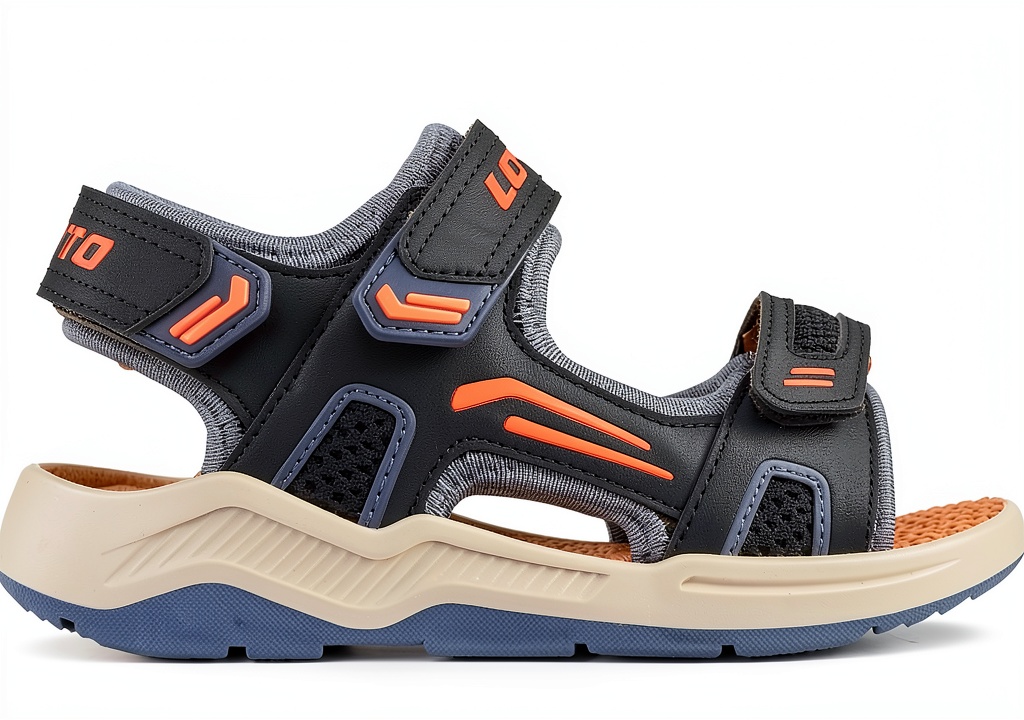 Die Lotto Klettsandale für Jungen kombiniert kindgerechtes Design mit hochwertiger Verarbeitung. Das Modell 2600640K verfügt über ein bequem gepolstertes Interlock-Futter und drei praktische Klettverschlüsse für individuellen Sitz. Erhältlich in den Farben Navy Midblue und Grey Navy sowie in den Größen 25-35 EU. Die Sandale zeichnet sich durch ihre robuste Bauweise und optimale Passform aus.
